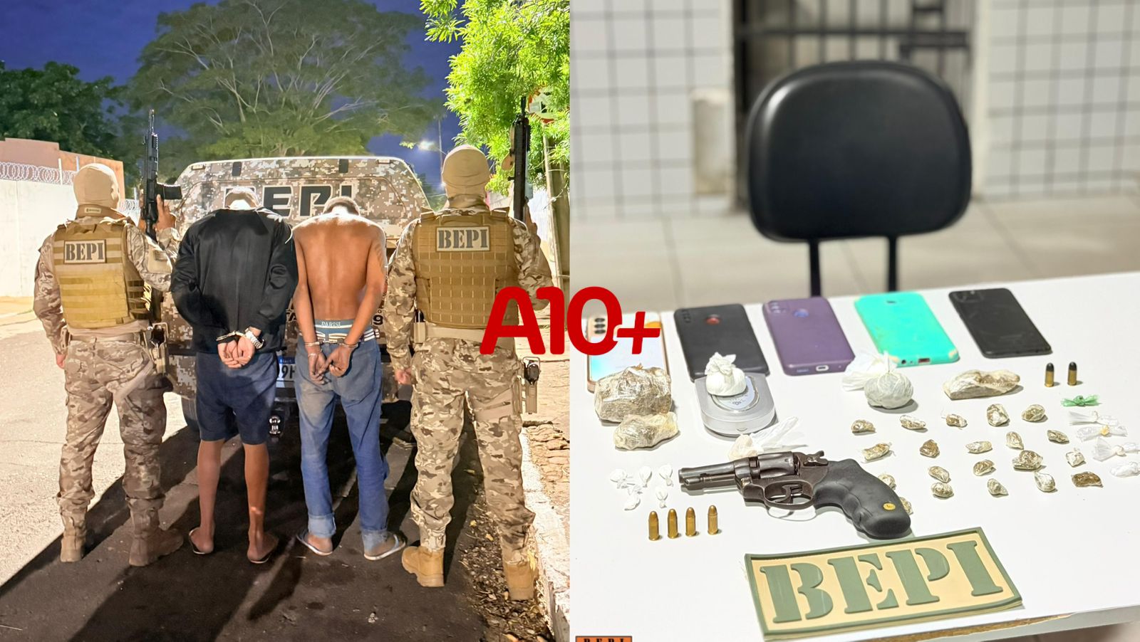 A Polícia Militar do Piauí prendeu, nesta terça-feira (03), dois indivíduos identificados apenas pelas iniciais M. S. S., e K. S. L. S., durante uma ação policial nas proximidades do bairro Palitolândia, zona Sul de Teresina. Foram apreendidas drogas e munições.