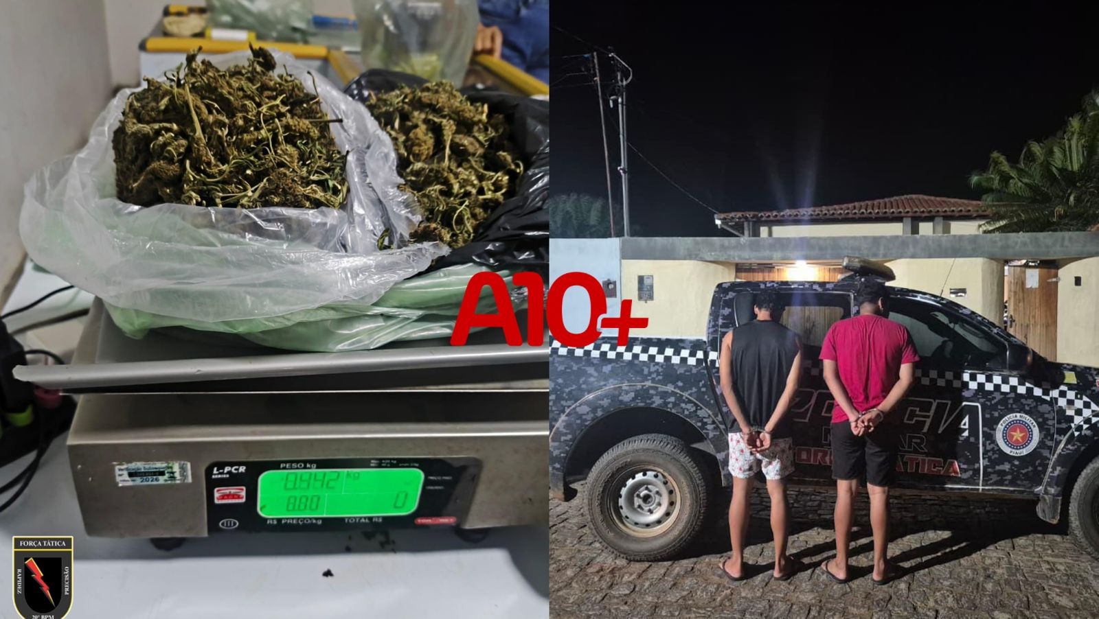 A Polícia Militar do Piauí prendeu, nesta quinta-feira (05), duas pessoas, identificadas pelas iniciais I. L. A., de 20 anos, e D. R. S., de 21 anos, e apreendeu uma quantidade de maconha que estava sendo preparada para ser comercializada durante o Carnaval na cidade de Paulistana, Sul do Piauí.