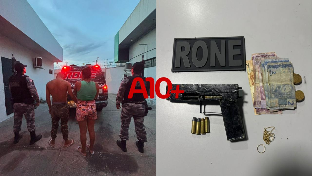 A Polícia Militar do Piauí prendeu, nessa quinta-feira (10), um homem e uma mulher identificados apenas pelas D. J. R. S., de 20 anos e R. R. da S. F., de 25 anos, suspeitos de porte ilegal de arma de fogo na zona Sul de Teresina.