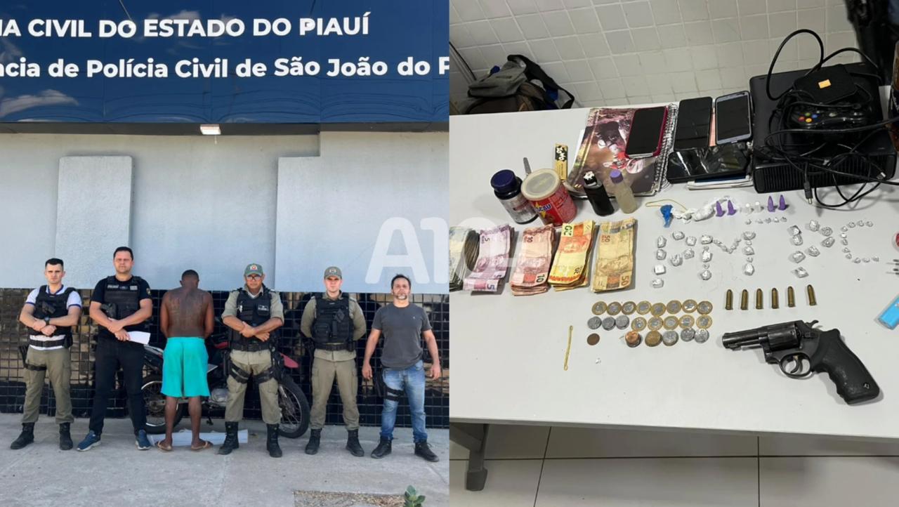 A Polícia Civil do Piauí prende nesta quinta-feira (02), um homem identificado apenas pelas iniciais D.R dos S, suspeito dos crimes de tráfico de drogas e porte ilegal de arma de fogo na cidade de São João do Piauí.