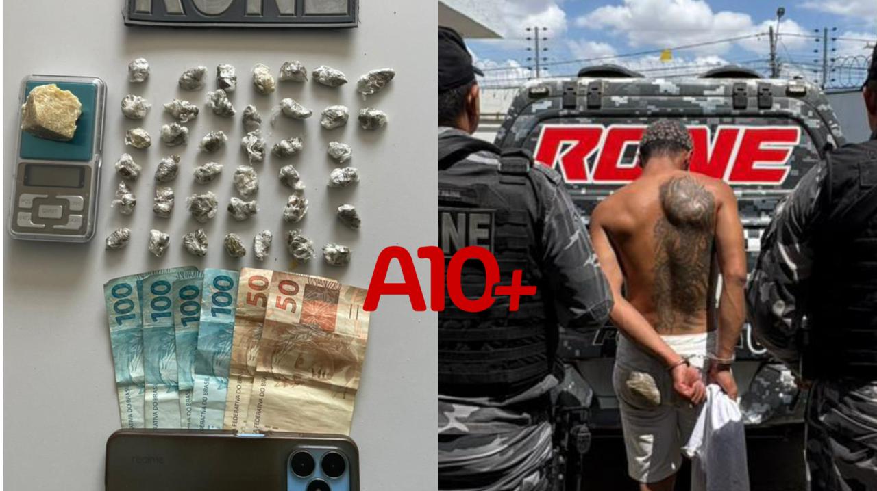 O suspeito, identificado pelas iniciais J. V. J. dos S., de 24 anos, assumiu a posse da droga e foi preso em flagrante. Segundo a Polícia Militar, o indivíduo já possui antecedentes criminais e é apontado como integrante de uma facção criminosa com atuação na região.