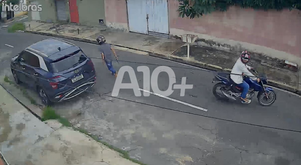 Câmeras de segurança registraram uma tentativa de assalto contra uma sargento da Polícia Militar do Piauí (PM-PI) na tarde desta quarta-feira (28), no bairro Renascença I, zona Sudeste de Teresina.
