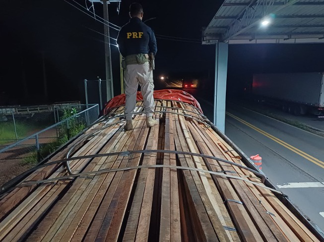 Segundo a PRF, uma equipe recebeu informações sobre um veículo que estaria circulando com possível carga ilegal. "O caminhão foi localizado estacionado em um posto de combustíveis às margens da rodovia, onde os policiais iniciaram os procedimentos de fiscalização. Durante a inspeção, foi constatado que o veículo transportava madeira serrada sem qualquer documentação fiscal ou ambiental obrigatória, como o Documento de Origem Florestal (DOF)", afirmou.