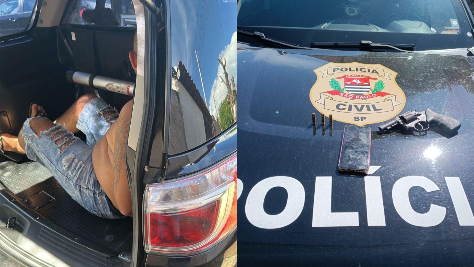 No momento da abordagem, o investigado estava portando um revólver calibre .38, o que resultou também em prisão em flagrante por porte ilegal de arma de fogo.
