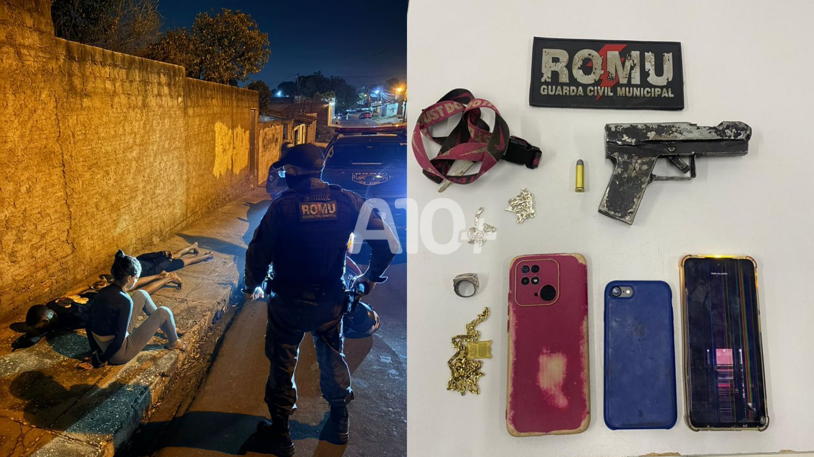 Durante a perseguição, os suspeitos perderam o controle da motocicleta e caíram em um esgoto. Com eles, foram apreendidos três celulares, joias, uma mochila com roupas e uma arma de fogo calibre .38 municiada. que eles tentaram descartar.