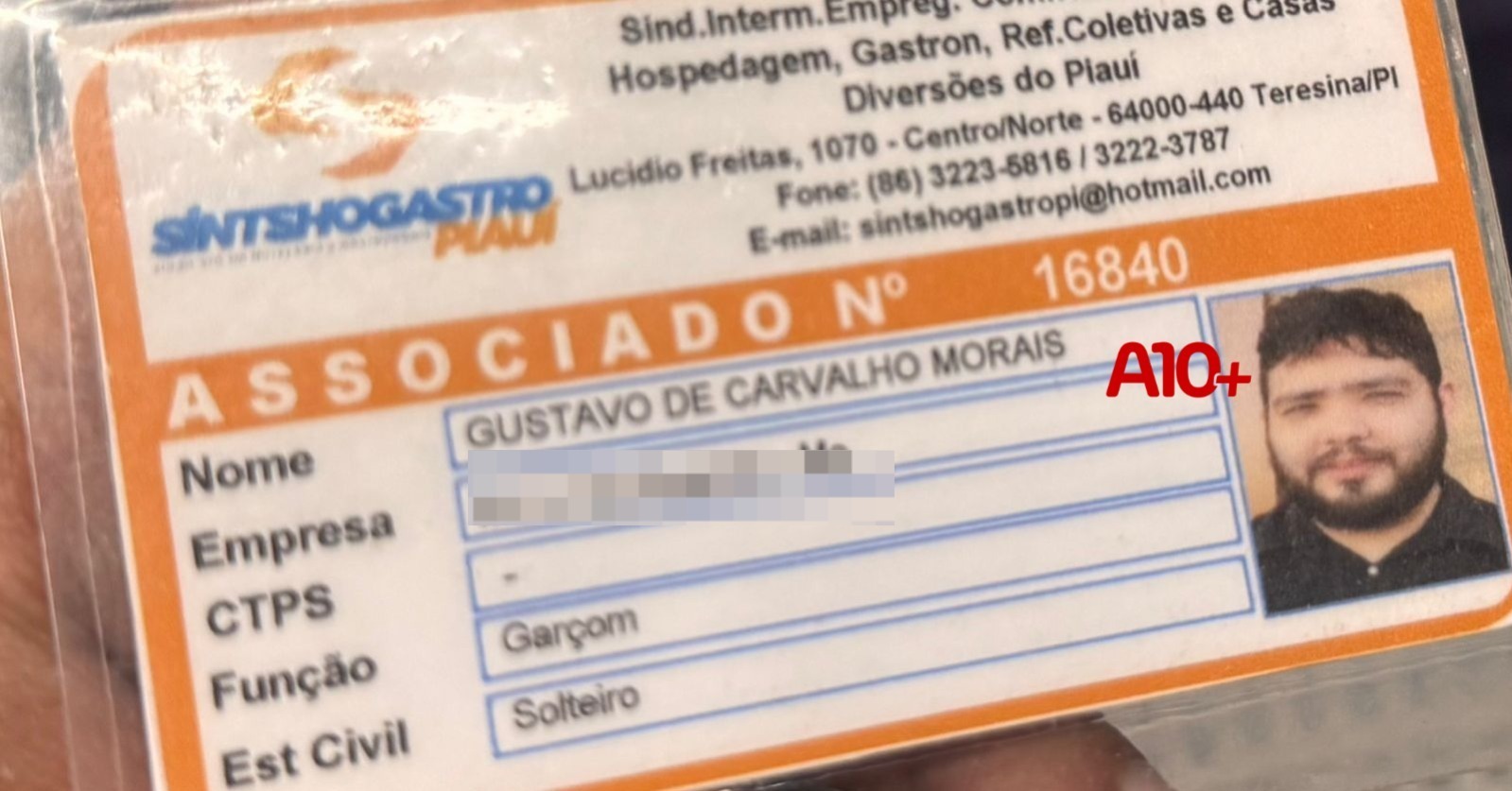 Durante o cumprimento dos mandados, os policiais encontraram uma carteira, na qual Gustavo se identificava como membro do Sindicato de Hoteleiros e Garçons do Piauí. "A última coisa informal que ele tinha encontramos um cartão, que era do sindicato dos garçons, que ele integrava. Fora isso, apesar de alegações, ele não tinha nenhum vínculo formal dele com alguma atividade", explicou.