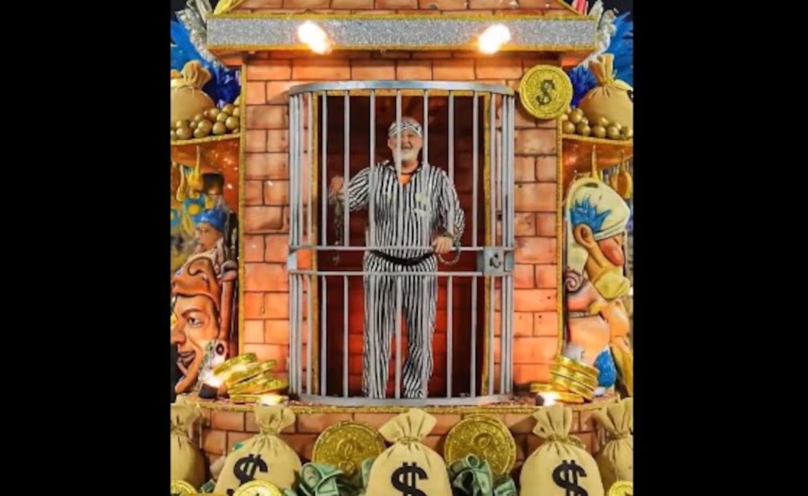 O vídeo postado por Flávio simula o desfile do “Bloco do Luladrão”. E tem diversas imagens de Lula e da primeira-dama Janja atrás das grades. A letra é toda voltada para criticar a gestão do petista.