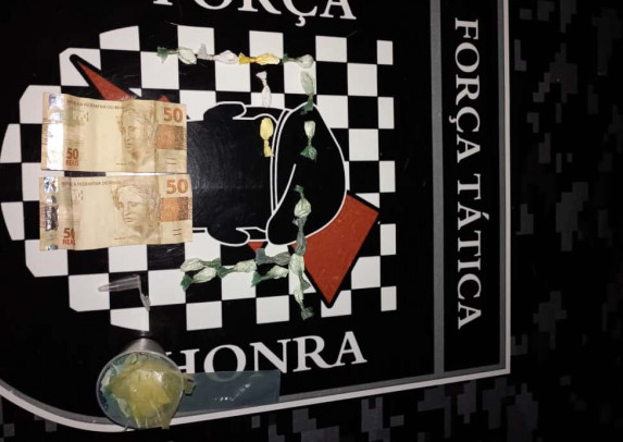 Ao chegarem ao bar, os policiais encontraram vários invólucros plásticos no chão, comumente utilizados para armazenar e consumir drogas. Durante a abordagem, “Baixinho” demonstrou nervosismo e tentou se desfazer de seis porções de substância análoga à cocaína.